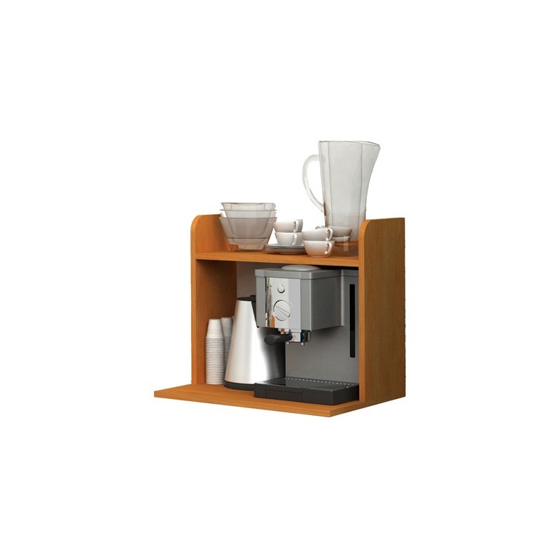 Angolo Ristoro: Set di mobili adatti ad arredare in modo efficacie una piccola zona caffè o ristoro all'interno di aziende, negozi, SPA ecc. In materiale bilaminato nobilitato melaminico conforme alle norme UNI EN classe E1. Antigraffio e antiriflesso. Sopralzo opzionale per mobile Punto Caffè (cod.82930); Completo di ripiano posizionato a 38,2cm di altezza e foro passacavi alla base. Bicolore bianco/noce chiaro. Dimensioni: 59,8x24cm - H50cm.