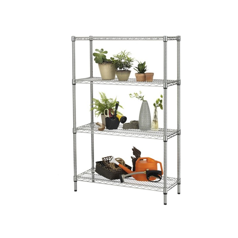 Robusti scaffali in acciaio zincato verniciato a polvere cromata per esterni. Tubolari Ø2,54cm e piedini regolabili. Profondità scaffali 36cm, portata 100Kg per ripiano. Eccezionale resistenza alle intemperia.