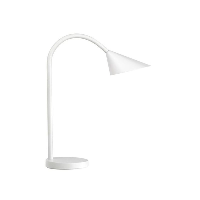 Lampada con calotta disegnata per illuminare in modo ottimale il piano lavoro. Il braccio flessibile consente di orientare la luce in qualunque posizione. Interruttore on/off sul cavo. Base e calotta Ø14cm. Braccio in metallo con elastomero. Testa e base in ABS. Led 7,4W integrato. (non sostituibile). Made in China. Classe energetica: E