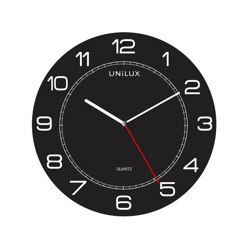 Orologio da parete con ottimo contrasto visivo grazie ai numeri bianchi su fondo nero. Diametro 57,5cm ideale per essere posizionato in ambienti ampi. Struttura in plastica con protezione in vetro. Alimentazione: 1 batteria AA 1,5V (inclusa). Made in China.