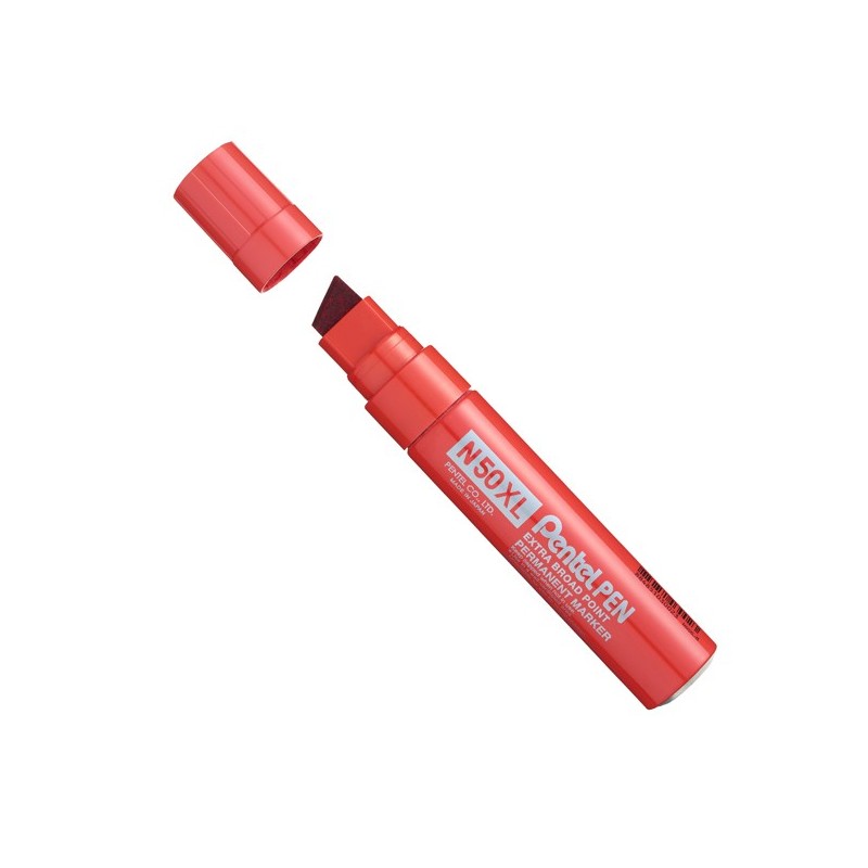 Marcatore professionale permanente con punta extra forte e fusto in metallo. Altà indelebilità dell'inchiostro. Adatto a tutte le superfici: legno, vetro, gomma, metallo, cartone, carta e plastica. Punta scalpello da 8-15,4mm. Colore: rosso.