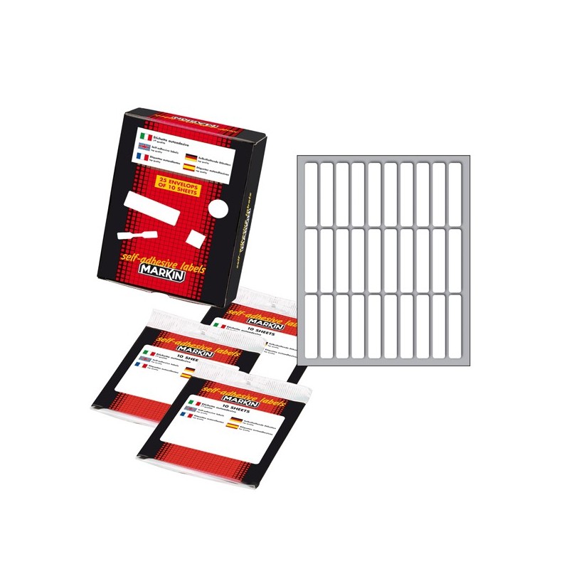 Busta da 10 fogli formato 125x152.5mm di etichette bianche permanenti. Ogni foglio contiene 30 etichette da 46x10mm.