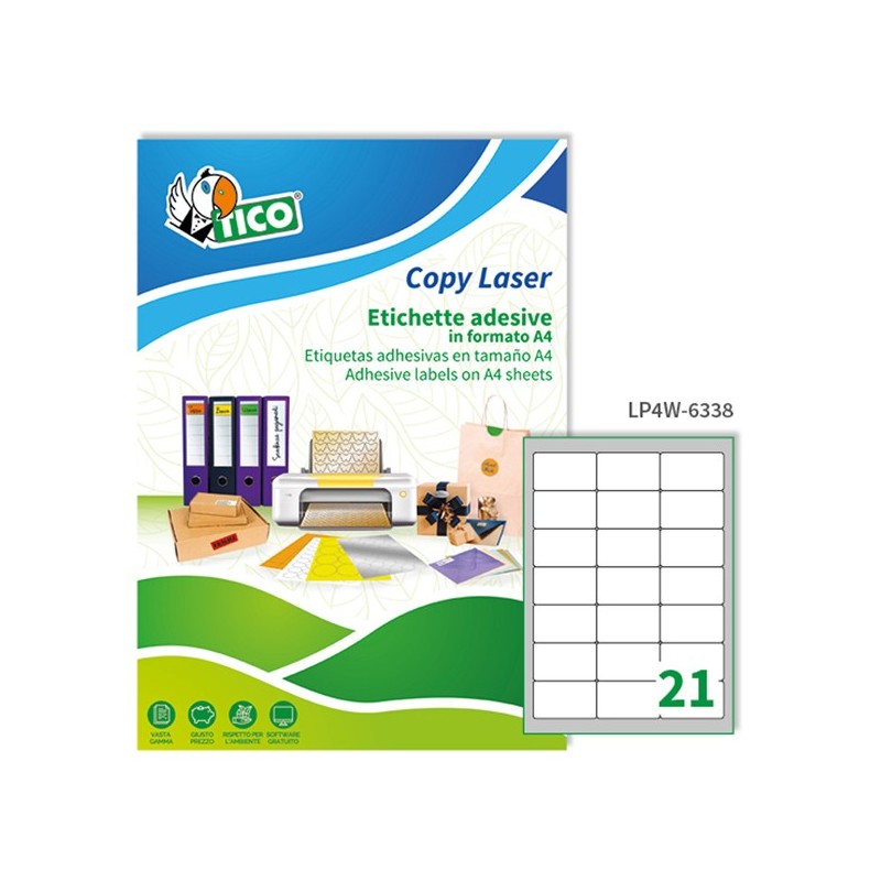 Etichetta adesiva LP4W - permanente - 63,5x38,1 mm - 21 etichetta per foglio - bianco - Tico - conf. 100 fogli A4