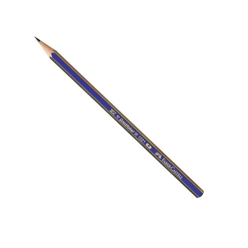 Matita in grafite Goldfaber 1221, fusto a sezione esagonale oro e blu. Mina morbida e scorrevole, resistente alla rottura grazie al sistema brevettato SV. Ideale per la scuola e per l’ufficio.