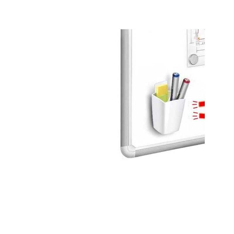 Robusto portapenne a 2 scomparti, dotato di una potente calamita. Ideale per lavagne bianche o superfici metalliche. Portata fino a 300g. Capacità fino a 10 pennarelli. 100% polystirene riciclabile. Dimensioni.: 78 x 74 H 95 mm. Non compatibile con lavagne magnetiche in vetro.