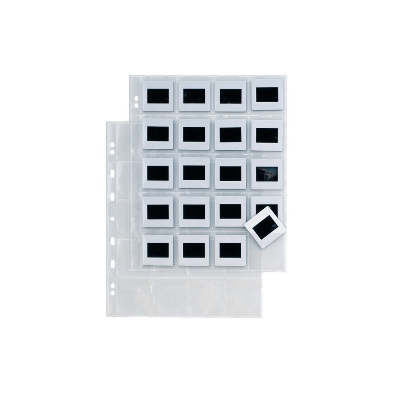 Buste porta diapositive in PP liscio con foratura universale. Dotate di 20 spazi per la raccolta di diapositive "leica". Spazi 20(5,5x5,5cm). Confezione da 10.