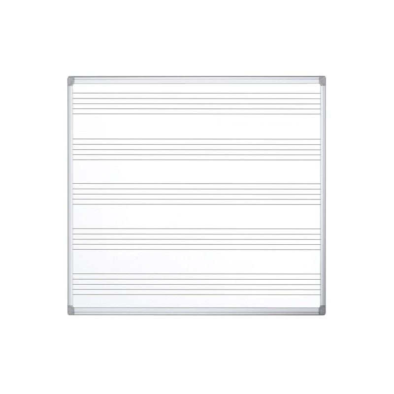Lavagna bianca di alta qualità stampata con pentagramma musicale. Superficie magnetica in acciaio smaltato antigraffio e antidissolvenza adatta per un uso intenso. Le righe del pentagramma hanno spessore di 1,25mm con spazi da 20mm. Porta penne e kit di fissaggio a perete inclusi. Garanzia di 25 anni in condizioni di utilizzo normale.