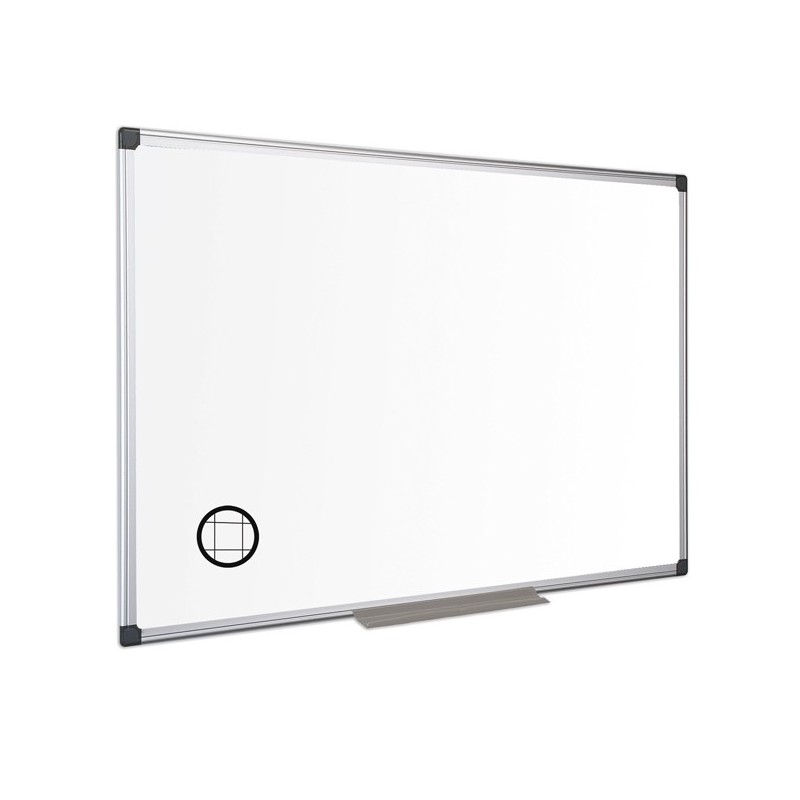 Lavagna bianca di alta qualità stampata con quadretti dal colore tenue che aiutano a scrivere e disegnare ma non sono visibili da lontano. Superficie magnetica in acciaio smaltato antigraffio adatta per un uso intenso. Cornice in acciaio anodizzato. Porta penne e kit di fissaggio a perete inclusi. Dimensioni: 90x120cm - quadretti 2,5cm. 25 anni di garanzia sulla superficie.