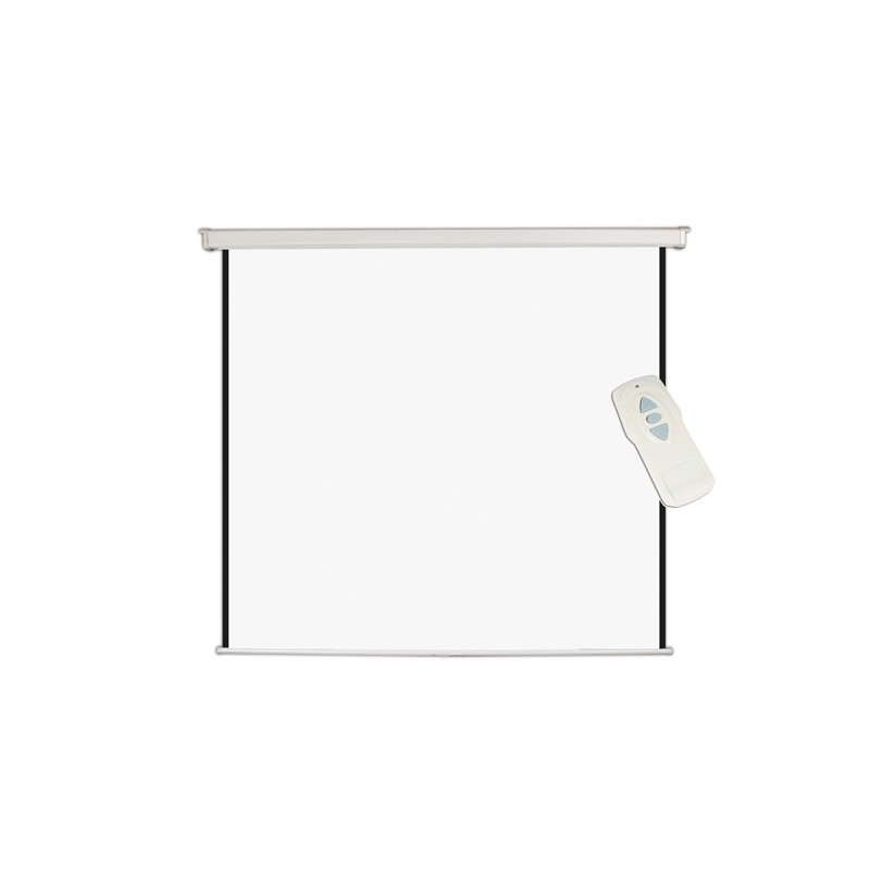 Schermo per proiezione a parete motorizzato con telecomando. Formato quadrato. Motore silenzioso integrato nell'alloggiamento dello schermo. Interruttore Up/Down Off con telecomando incluso. Superficie di proiezione bianco opaco. Offre una riflettività superiore e una superficie piatta. Ideali per tutti i proiettori frontali. Dimensioni: 180x180cm.