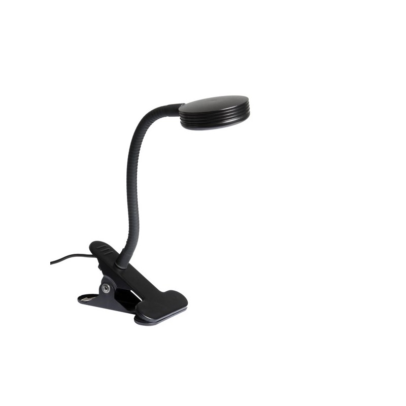 Lampada a LED con attacco a clip per illuminare lavagne, leggii ed espositori di sera. Utlizzabile all'esterno con 5 metri di cavo o con batteria ricaricabile (non inclusa). Dimensioni: 27x11x7,5cm.