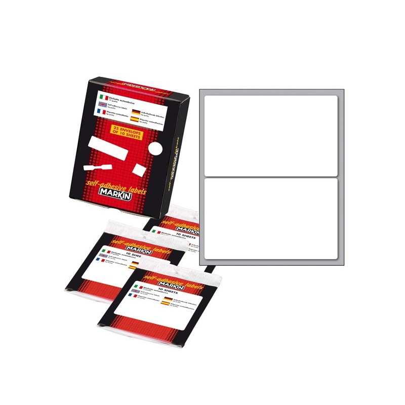 Busta da 10 fogli formato 125x152.5mm di etichette bianche permanenti. Ogni foglio contiene 2 etichette da 115x70mm.