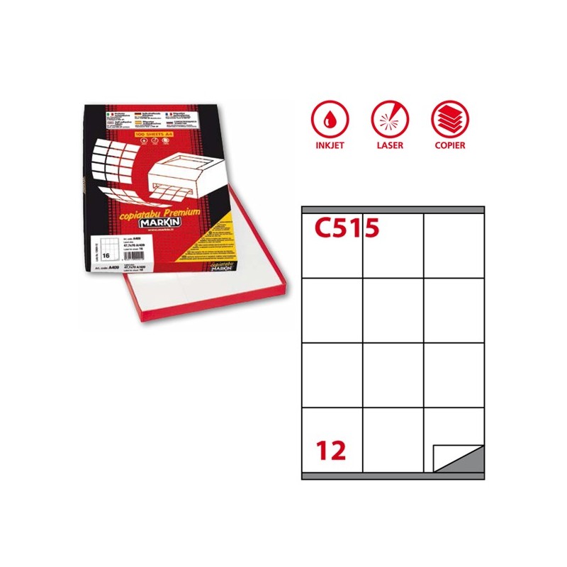 Scatola da 100 fogli di etichette in carta adesiva permanente in formato 21x29,7cm adatti per fotocopiatrici, stampanti laser, inkjet.