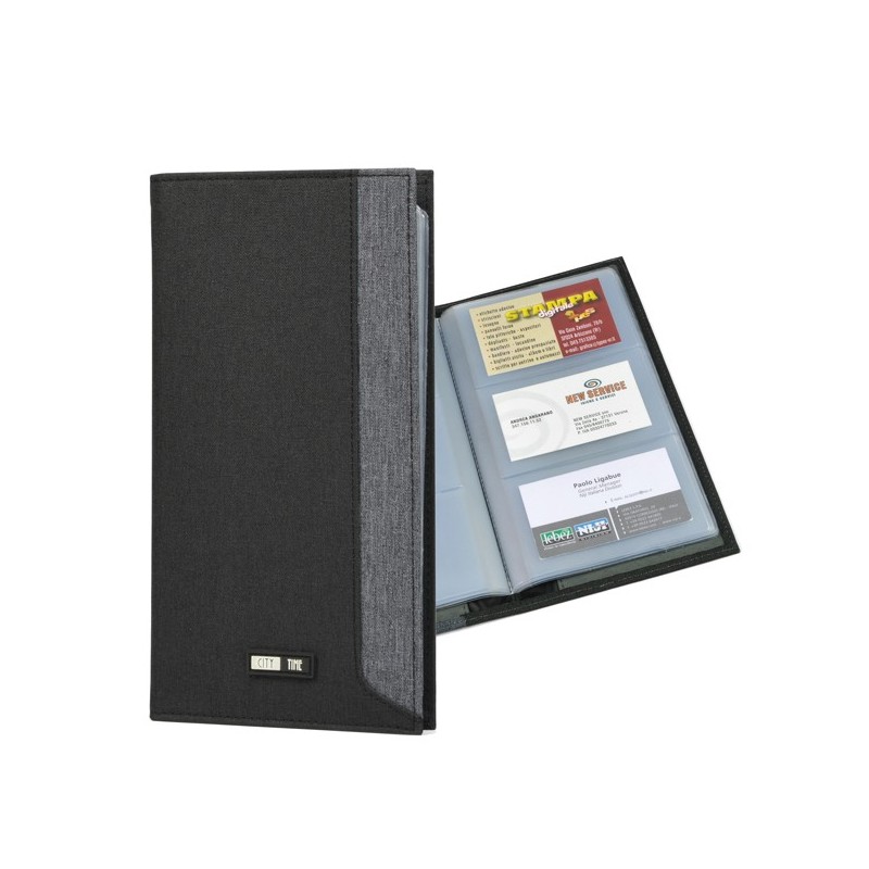 Portabiglietti City Time Niji in tessuto nero/grigio. Dimensioni 12x23cm, capacità 64 biglietti da visita.