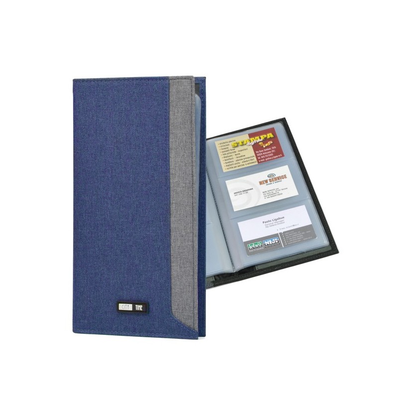 Portabiglietti City Time Niji in tessuto blu. Dimensioni: 12x23cm. Capacità 64 biglietti.