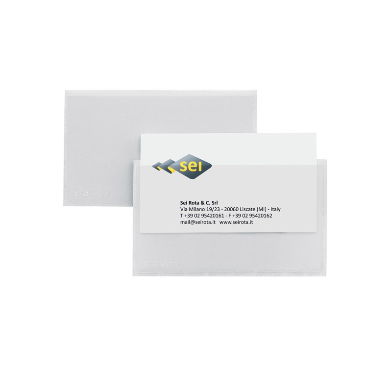 Porta biglietti autoadesivi trasparente realizzate in PVC. Formato utile 5,5x9cm.
