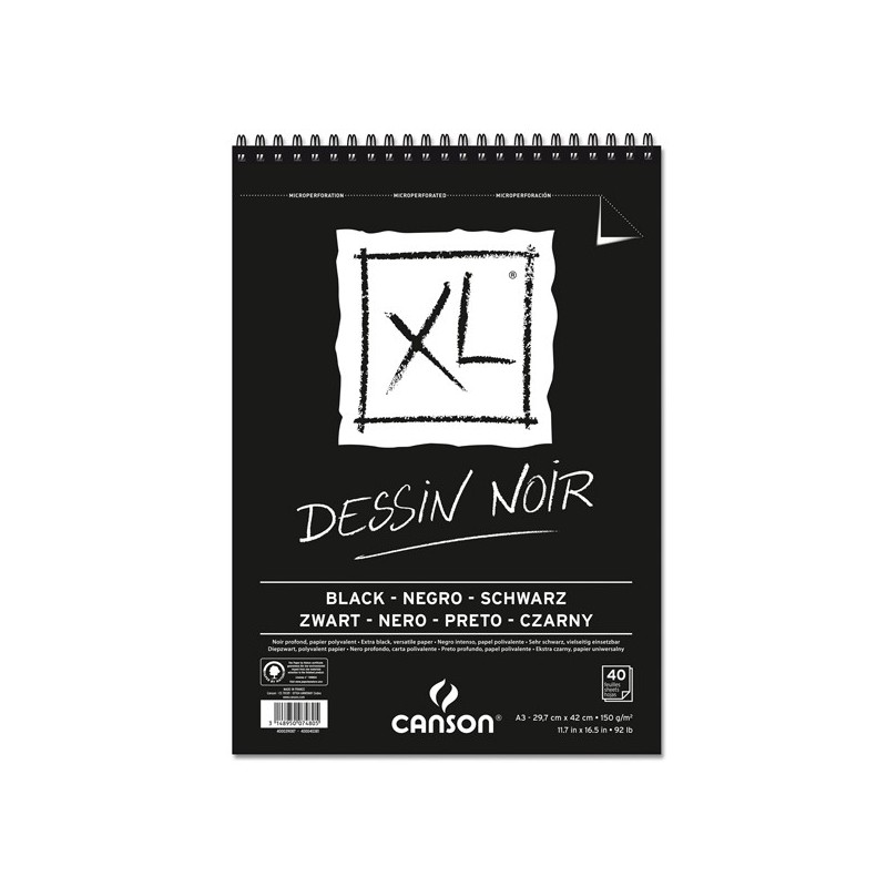 Carta nero profondo monoruvida colorata in massa. Perfetta per risaltare i contrasti di matite colorate, pastelli e gessetti. Fogli microperforati.