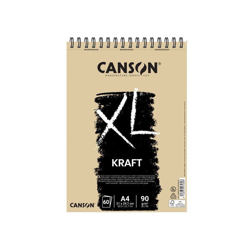 Carta artistica kraft per tutte le tecniche secche. Senza acidi e senza azzurranti ottici, per grafite, carboncino, sanguigna e pastello. Fogli microperforati.