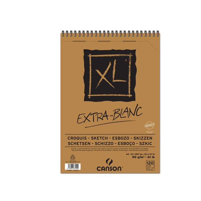 Carta fine extra bianca per tecniche secche. Elevato punto di bianco senza acidi. Perfetta per schizzi e disegni. Fogli microperforati.