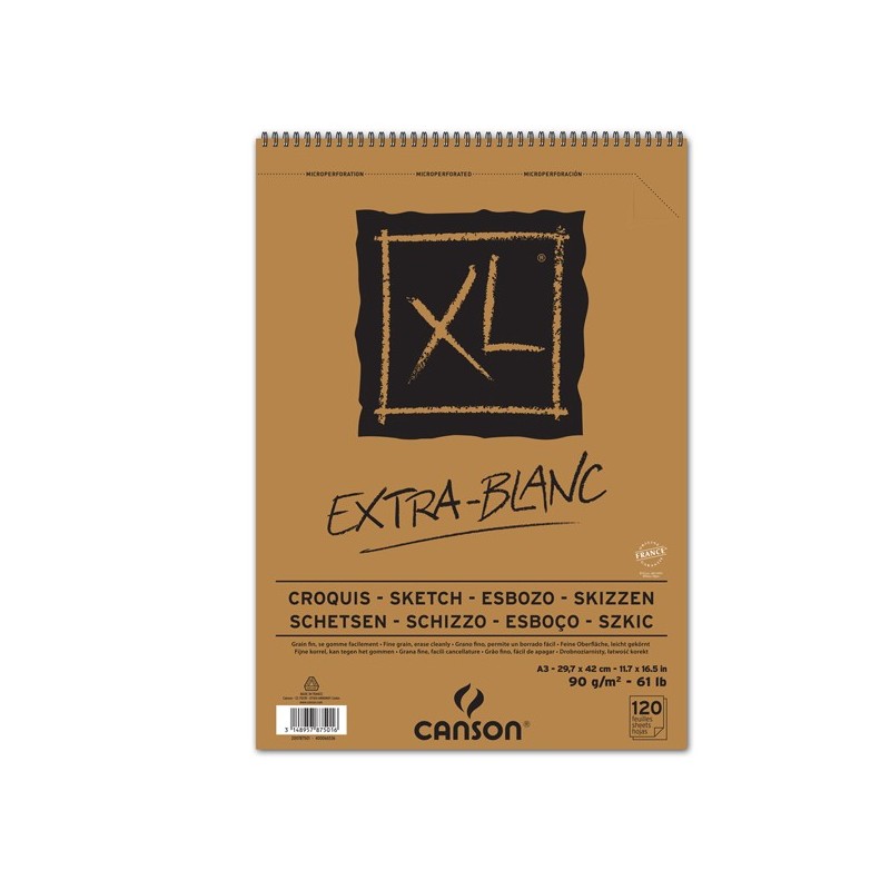 Carta fine extra bianca per tecniche secche. Elevato punto di bianco senza acidi. Perfetta per schizzi e disegni. Fogli microperforati.