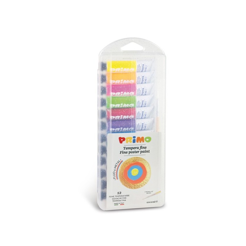 Tempera in tubetto di alluminio da 12 ml, in scatola in PP da 12 colori: : 4 fluo e 8 metallizzati. Questi colori a tempera concentrati di qualità fine permettono facile stesura e buona coprenza. Vanno diluiti secondo l’effetto desiderato. Una volta asciutti mantengono toni molto intensi e brillanti e si possono utilizzare su svariate superfici come carta, cartoncino, cartone, legno, stoffa, vetro, metallo, terracotta e plastica. Per aumentare l’effetto coprente mescolare 10 parti di colore con 1 di bianco, per delicate tonalità pastello mescolare 1 parte di colore con 10 di bianco. Sono compatibili con tutti i colori ad acqua delle linee Morocolor. Rimuovere subito le macchie secondo istruzioni.
