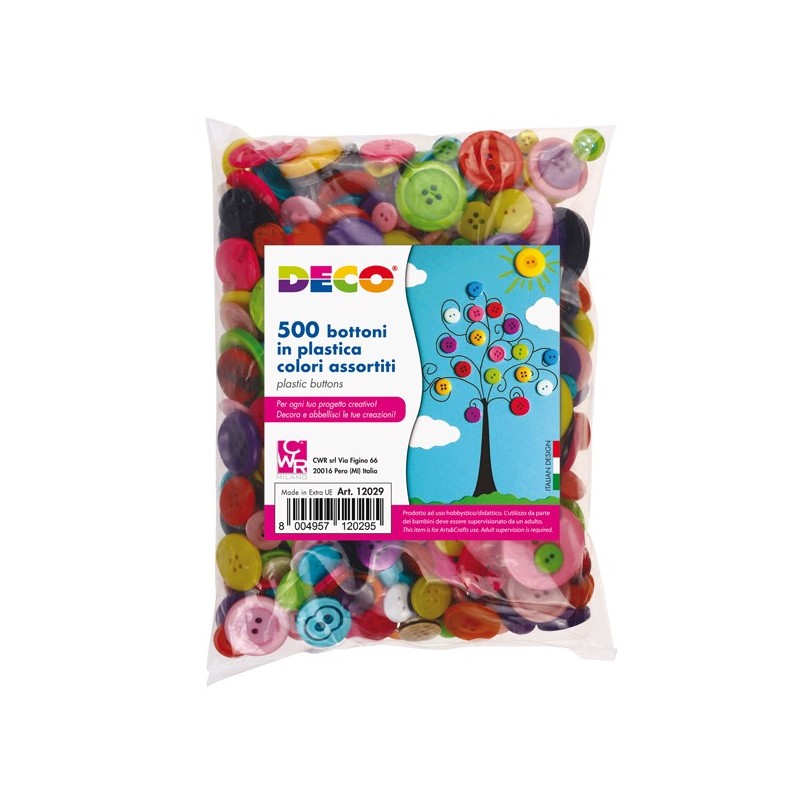 Confezione assortita di 650 bottoni in plastica colori assortiti.