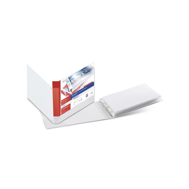 Raccoglitore bianco personalizzabile in Colpan¨ (cartone rivestito in PVC) con meccanismo a 4 anelli a D e tasca interna. Dotati di tasche trasparenti sul I° quadrante e sul dorso. Inserimento facilitato della personalizzazione nel dorso. Formato esterno: 480x315mm. Formato contenuto: 420x300mm(A3 album). Dorso 50mm. Anelli a D 4 da 50mm.