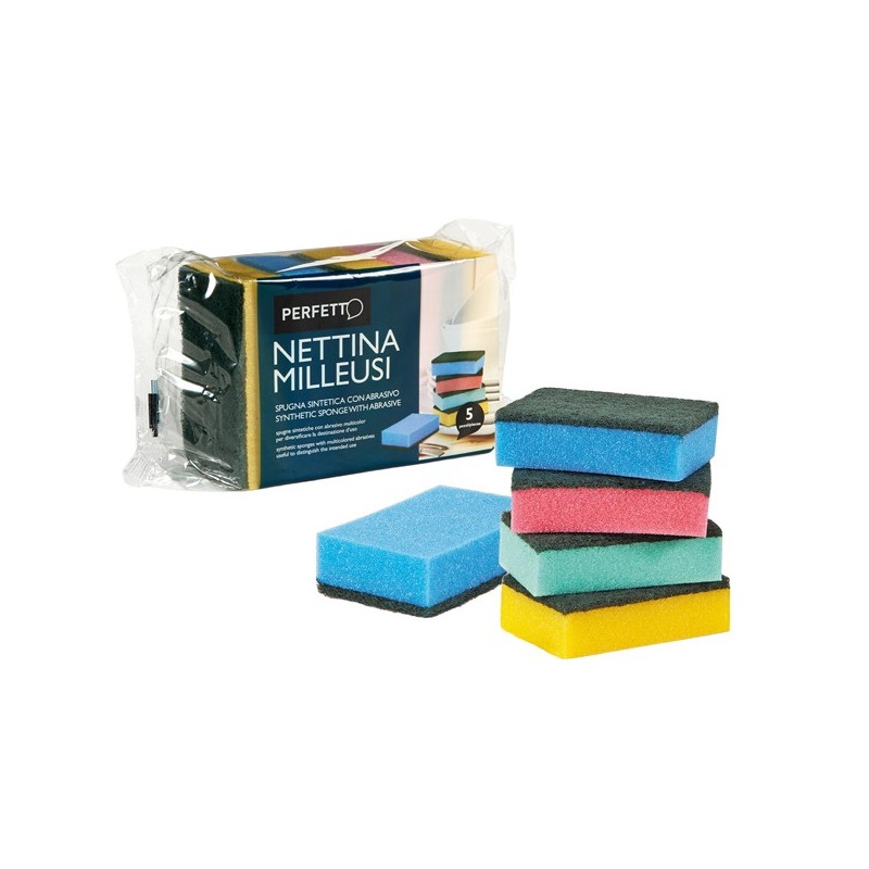 Spugna nettina Milleusi - 11x6,5x3 cm - doppio strato - colori assortiti - Perfetto - conf. 5 pezzi