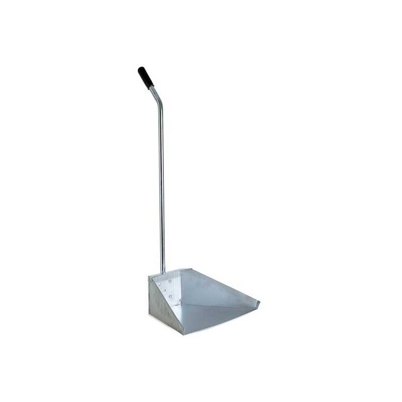 Alzaimmondizie in metallo zincato con manico. Struttura in lamiera zincata spessore 0,5mm con manico in metallo altezza 70cm con manopola in gomma antiscivolo. Dimensioni: L35 x P24 x H12cm.