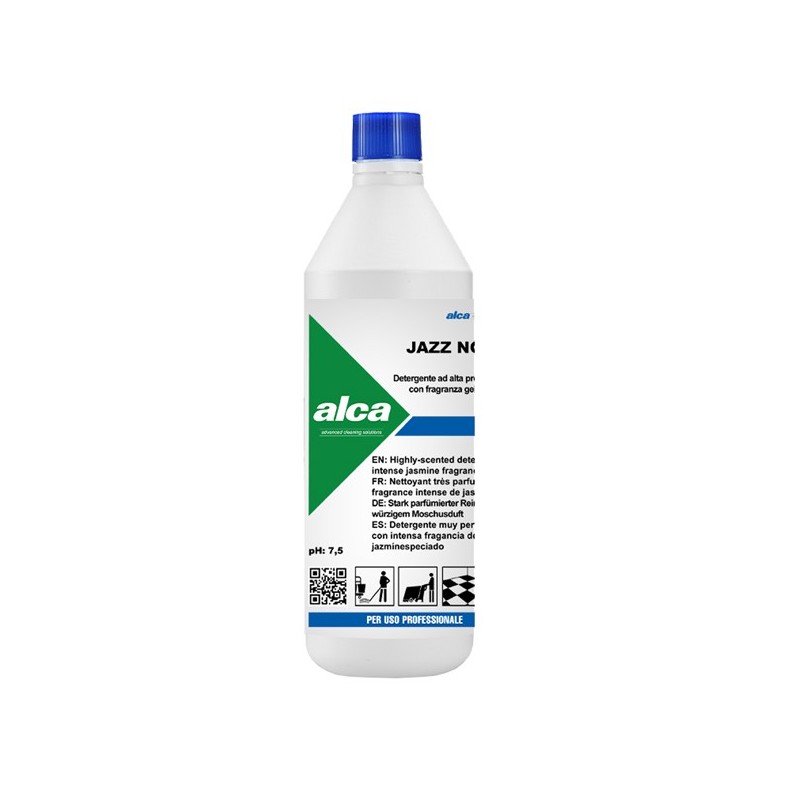 JAZZ NORAH - Detergente ad alta profumazione con fragranza intensa di gelsomino. Miscela neutra (pH 7,5) ad alto tenore di profumo con agenti sinergici in base acquosa adatta a lasciare un’atmosfera gradevole nell’ambiente in cui si è lavorato. Consigliata per luoghi chiusi soggetti a passaggio frequente di persone. Adatta per le pulizie di manutenzione di tutte le superfici lavabili. Prodotto poco schiumoso, adatto all’uso sia manuale che a macchina senza risciacquo, lascia le superfici brillanti e profumate, senza residui nè aloni. In flacone da 1 litro.