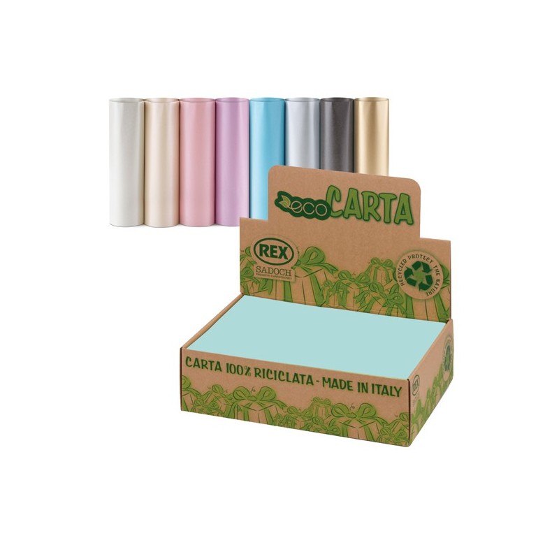 Scatola espositore da 100 fogli di carta perlata 60-65gr. Fogoi da 70x100cm in carta riciclata al 100%. Colori Assortiti.