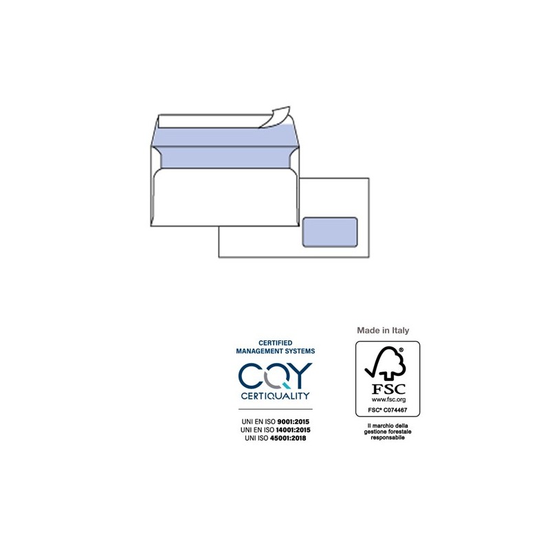 busta bianca internografata 90gr con finestra in triacetato opaco f.to 40x100mm. con strip