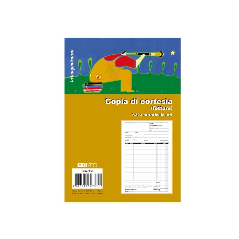 Blocco copia di cortesia (fattura) 33x3 autocopiante. Formato 22x14,8cm.
