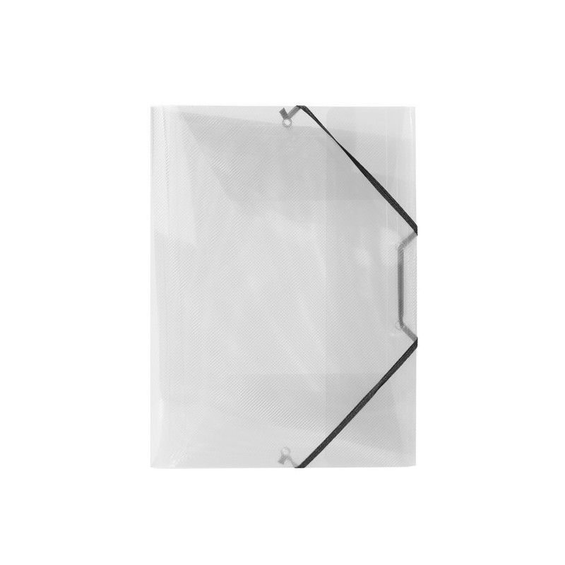 Cartelle realizzate in polipropilene trasparente con speciale finitura rigata. Chiusura con elastico piatto di colore nero. Formato utile: 22x30cm. Dorso 0-3cm. Made in China.