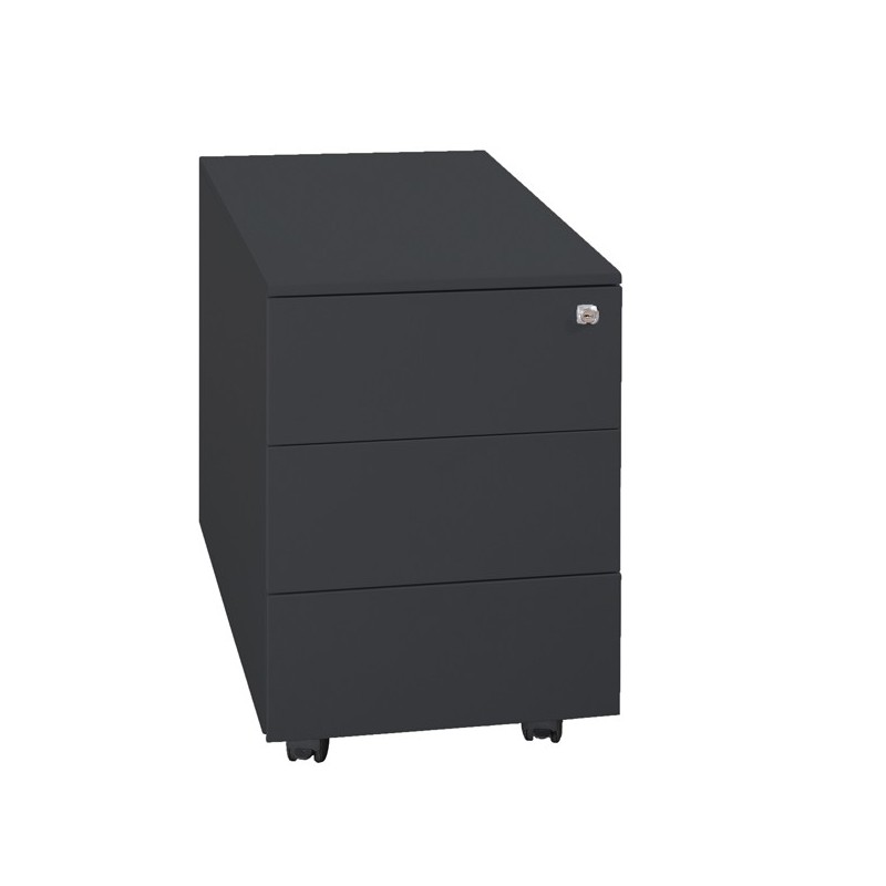 Cassettiera 3 cassetti con chiusura centralizzata. Guide metalliche con fermo a fine corsa. Fornita montata. Dimensioni: Dimensioni: L40 x P59 x H55cm compreso ruote.