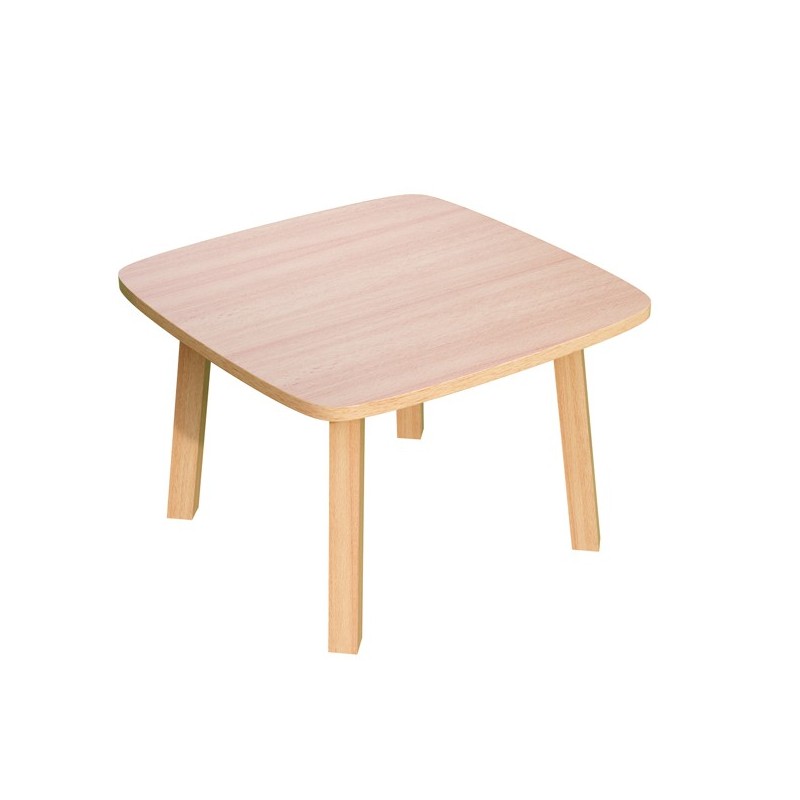 Tavolino Woody in MDF rivestito faggio. Gamba del tavolo in legno massello verniciato. Dimensioni:L60 x P60 x H40cm . Ideali per una sala attesa calda ed accogliente.