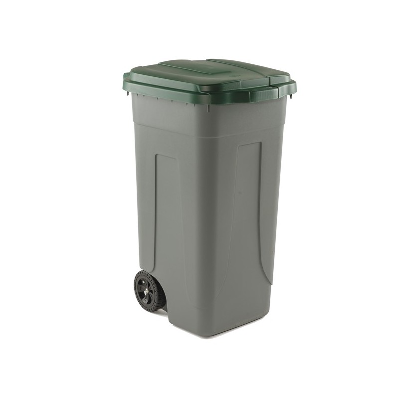Bidone mobile - con chiusura a clip - 49x54x85 cm - 100 L - grigio/verde - Mobil Plastic