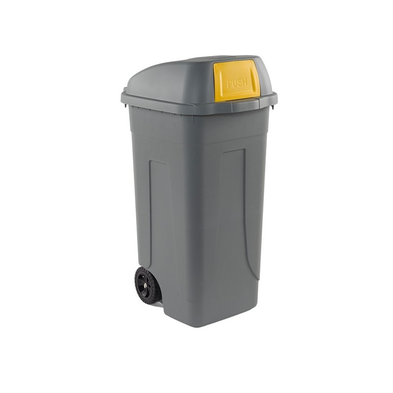 Bidone mobile Push - con coperchio - 49x54x95 cm - 100 L - grigio/giallo - Mobil Plastic