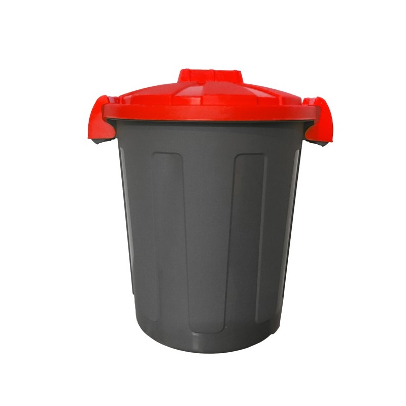 Pratico bidone portari?uti da 25 litri, con coperchio dotato di chiusura a clip. Realizzato in polipropilene (PP) riciclabile 100%. Design moderno, si adatta a tutti gli ambienti. Bidone colore grigio e coperchio rosso. Dimensioni: Ø36 x H45cm.