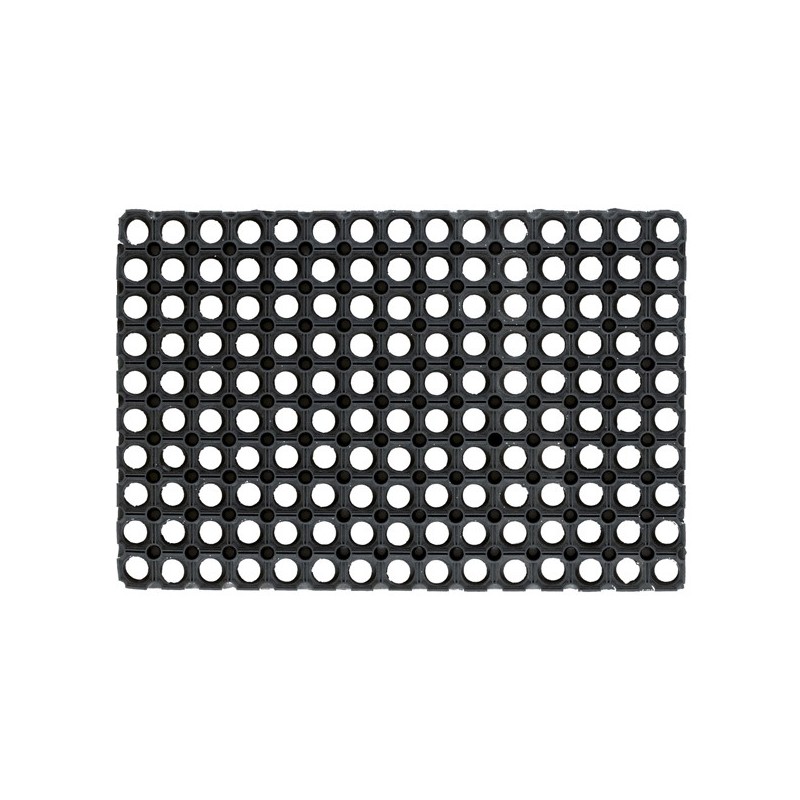 Zerbino in gomma 100%. Utilizzabile sia come normale zerbino da ingresso che come base per una vera piattaforma antishock adatta per moltissimi fondi (cemento, terra battuta, ghiaia, erba, sabbia). Si possono unire fra loro più lastre (attraverso gli appositi connettori). Spessore 23mm.