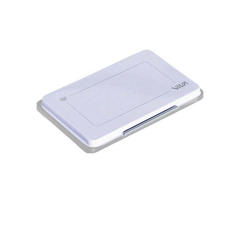 Struttura in metallo con bordo in plastica, cuscinetto di tela e feltro. Dimensioni: 110x70mm. Disponibili nei seguenti colori: nero - blu - rosso - neutro.