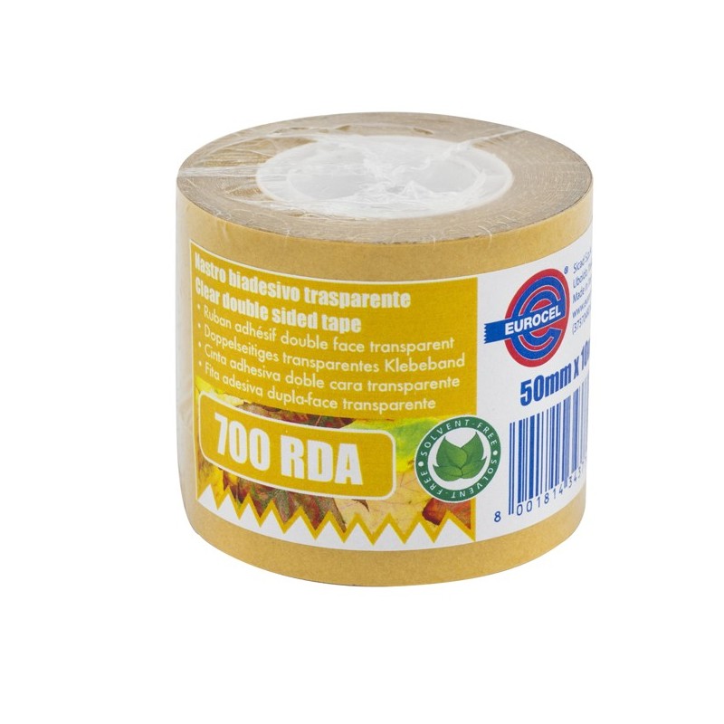 Nastro biadesivo 700RDA - 50mmx10mt - in termo singolo + etichetta - trasparente -Eurocel