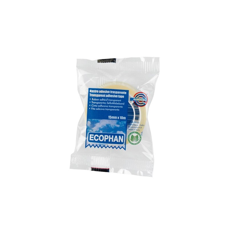 Nastro adesivo Ecophan - 15 mm x 10 mt - in caramella - trasparente - Eurocel