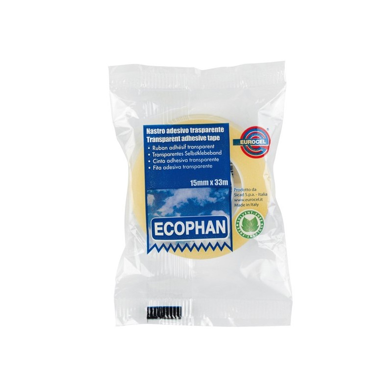 Nastro adesivo Ecophan - 15 mm x 33 mt - in caramella - trasparente - Eurocel