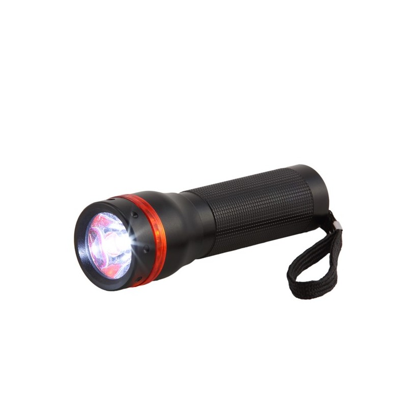 Torcia Led 1W / 70 lumen in alluminio con cordoncino. Profondità di fascio 50m. Lunghezza 11cm. Alimentazione 3 batterie AAA (incluse)