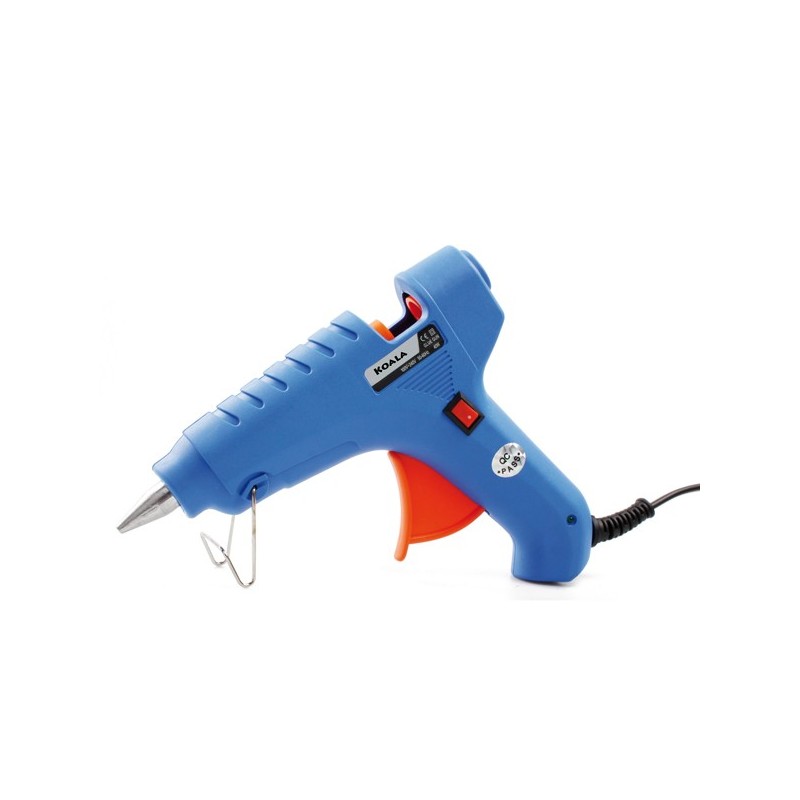 Pistola per colla a caldo, potenza 40W, con ugello antigoccia in alluminio. Ideale per montaggi e riparazioni su legno, cartone, metallo, giocattoli, tessuti, schede elettroniche, decorazioni varie. Dotata di cavalletto di appoggio. Tempo di riscaldamento 3-5 minuti. Utilizza colla termofusibile Ø11mm. • Diametro colla termofusibile utilizzata: 10,8-11,5 mm • Capacità di estrusione: 290gr/h • Voltaggio: 100V-240V • Dimensioni: 175x145mm • Peso: 245g