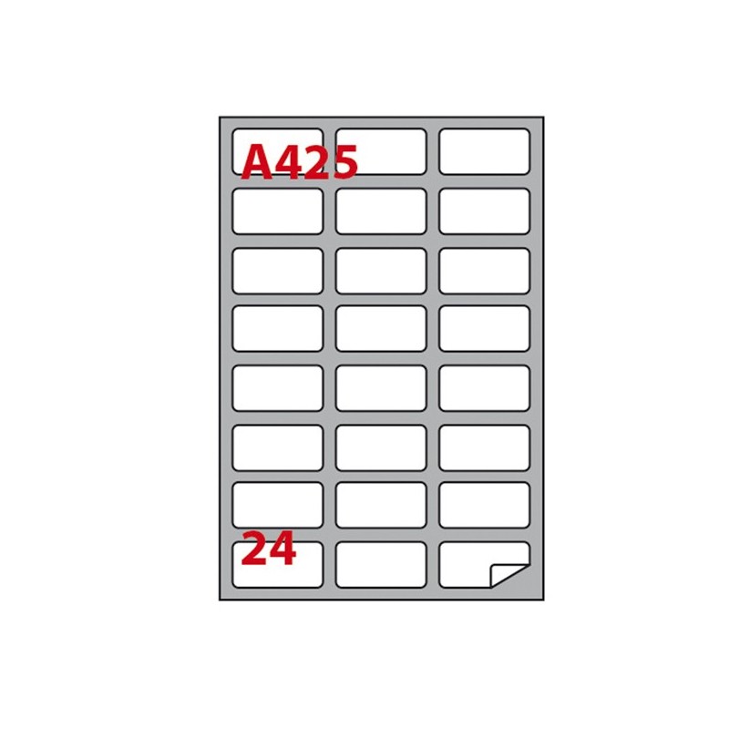 Scatola da 100fg da 21x29,7cm di etichette adesiva permanente bianche. Etichette con angoli tondi.