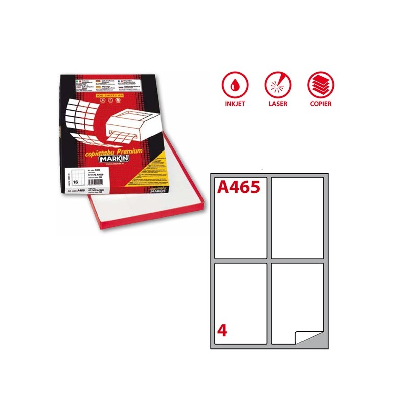 Scatola da 100fg da 21x29,7cm di etichette adesiva permanente bianche. Etichette con angoli tondi. Adatte per stampanti inkjet, laser e copy.