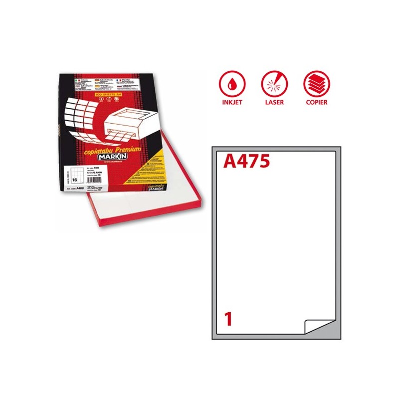 Scatola da 100fg da 21x29,7cm di etichette adesiva permanente bianche. Etichette con angoli tondi. Adatte per stampanti inkjet, laser e copy.