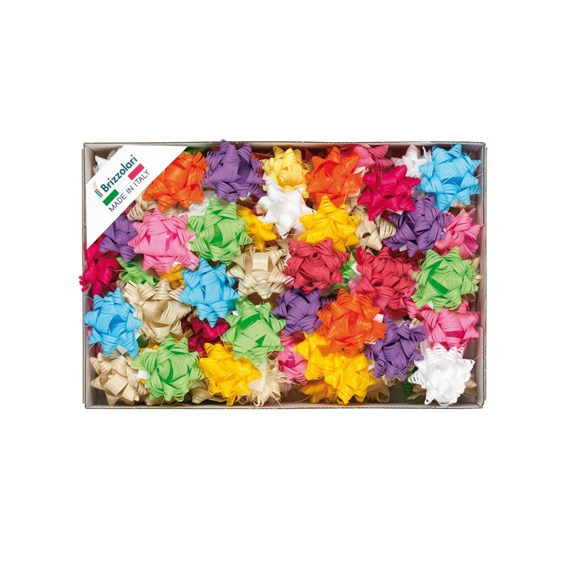 Vassoio da 100 stelle rafia sintetica in colori primavera assortiti.