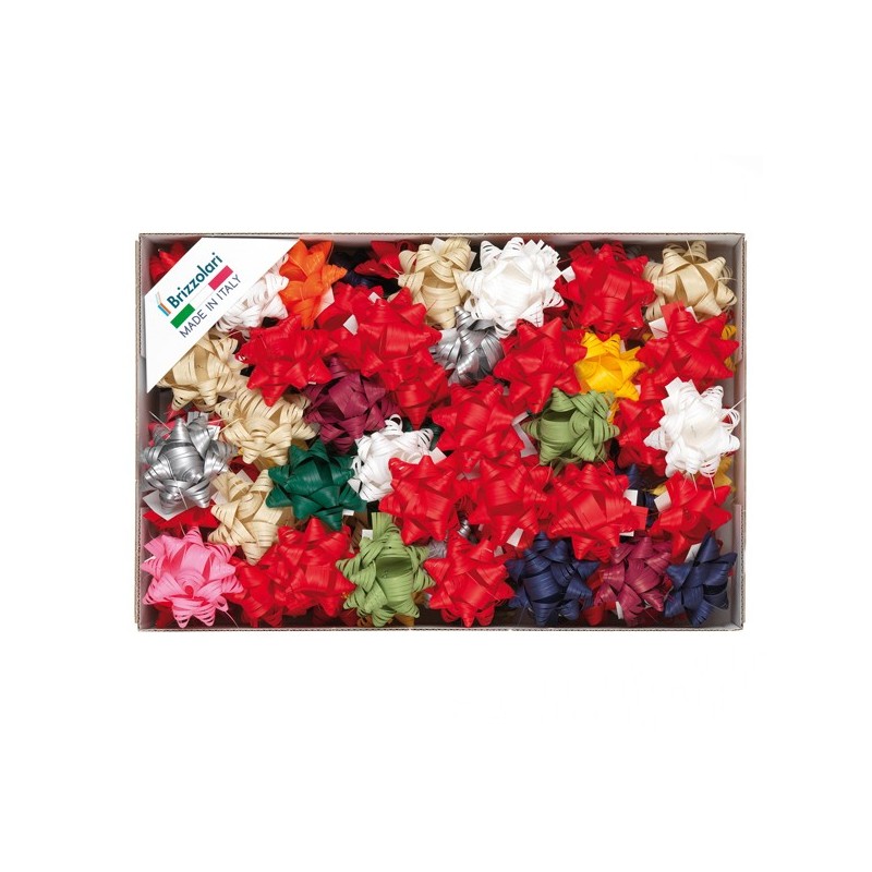 Vassoio da 30 stelle rafia sintetica in colori natalizi assortiti.